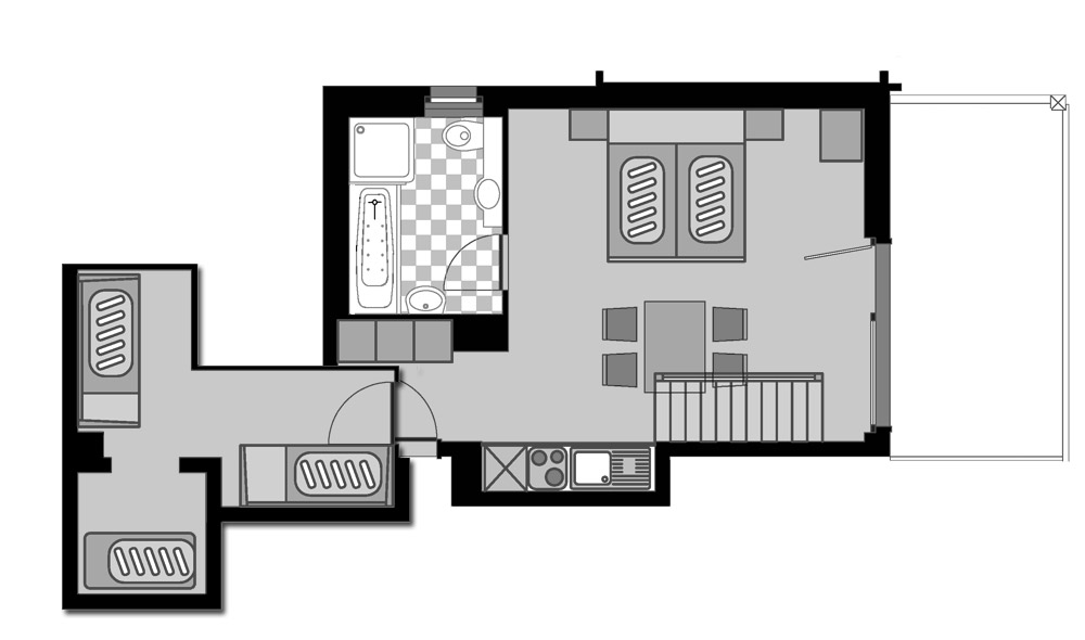 • Spacious, cosy double room equipped with kitchenette, table for 4-5 persons, bathroom with whirlpool, WC, shower, hairdryer, radio TV and balcony to the south with marvellous view of the mountains and glaciers.