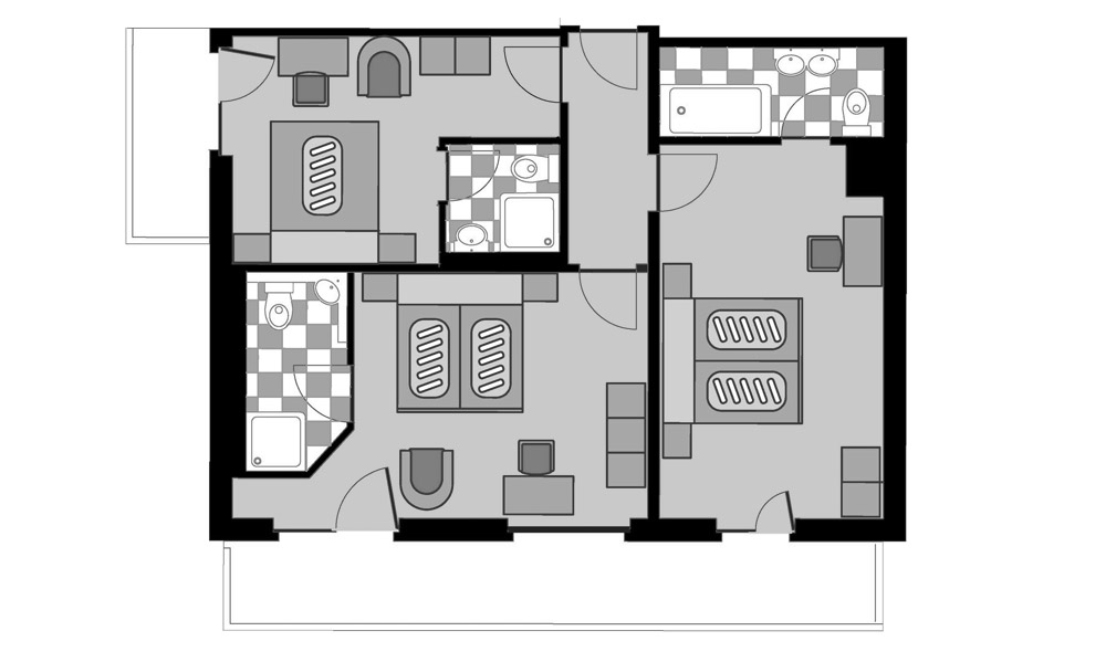 • These 3 rooms are separated from other guests by an anteroom with an own entry.
