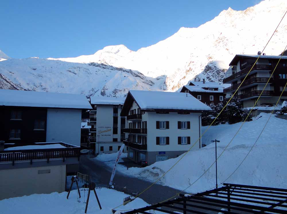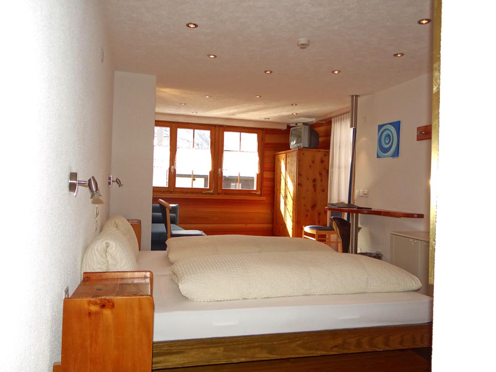 - Spacious, cosy double room (1 extra bed possible) equipped with kitchenette, table for 4-5 persons, bathroom with whirlpool, WC, shower, hairdryer, radio, TV and balcony to the south with marvellous view of the mountains and glaciers.