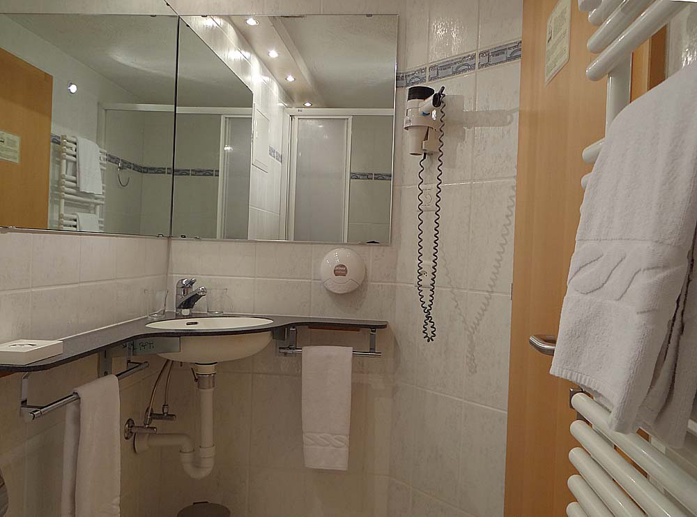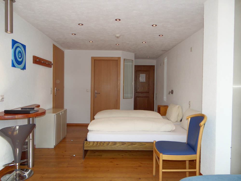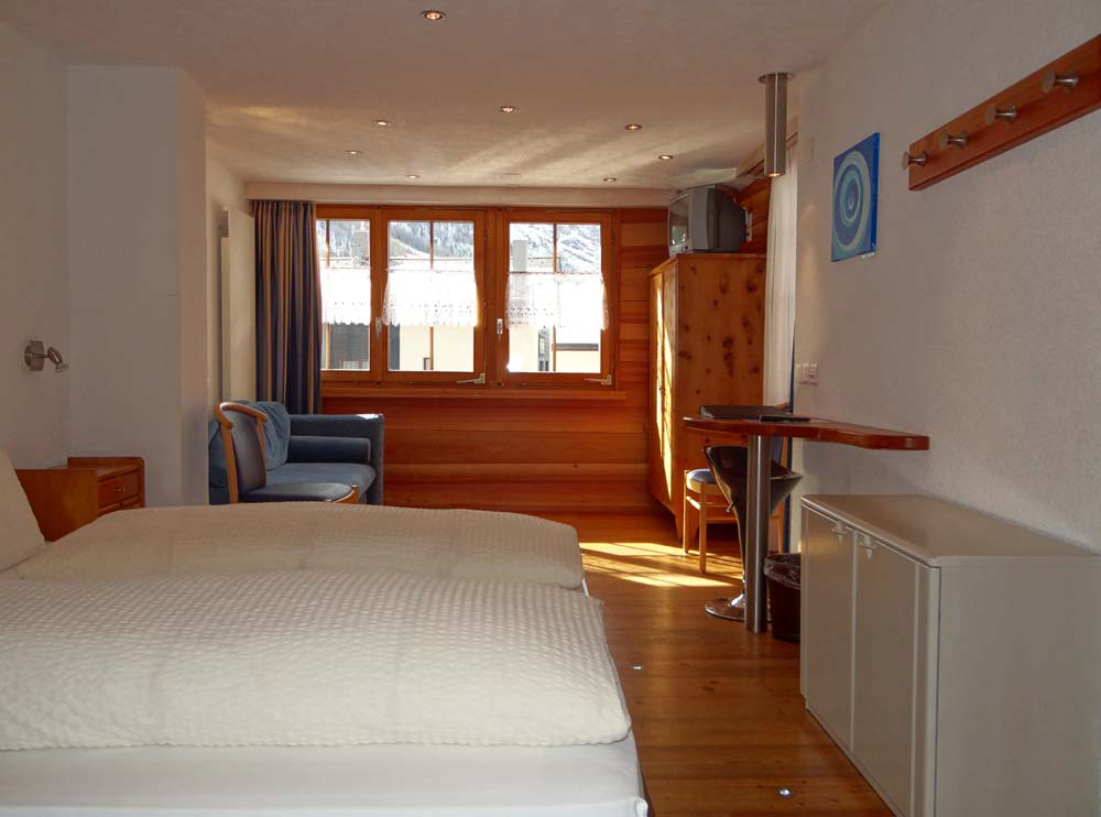 Chambre double (1 lit complémentaire possible) côté sud équipée de douche, WC, sèche-cheveux, radio, télé.