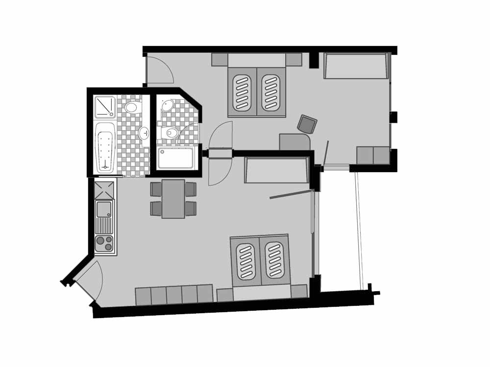 Geräumiges und modernes Doppelzimmer (ein Zusatzbett möglich) mit Kochnische, Esstisch für 4-5 Personen. Badezimmer mit Sprudelwanne, Dusche/WC und Haartrockner. Flat TV mit Radio. Balkon zur Südseite mit freier Sicht auf die imposante Berg- und Gletscherwelt von Saas-Fee.